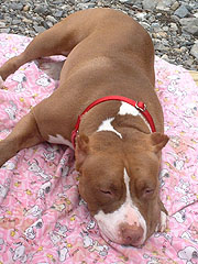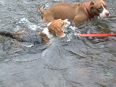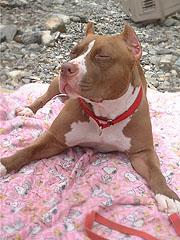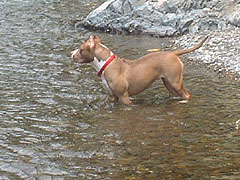 みいちゃん、立派なピット体! はしゃいで走って岩場からすべった〜〜 |
