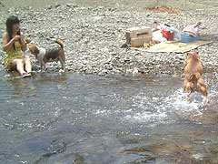 みいちゃん、顔をつけて石さがしに夢中。 |