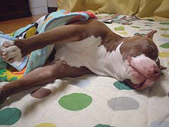 *みいの本当の寝間はバリケンなのですが、最近はおふとんをかぶってのおねんねもお気に入り。