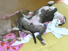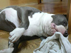こんな格好で寝ても、タオルをくわえたままです。 |