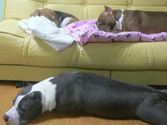 でも、強引にソファーへ移動。 みいはとても迷惑そう。 |