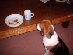 「テーブルの下で寝ている