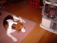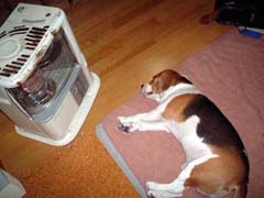 「ストーブの前でのんびり